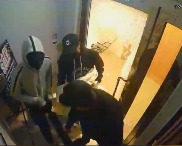 左证涉事店铺的监控画面可见,有3名贼东谈主破门闯入店内,暴力砸烂玻璃展柜,将展柜内手袋放入三个大袋子后,乘坐私家车逃脱。