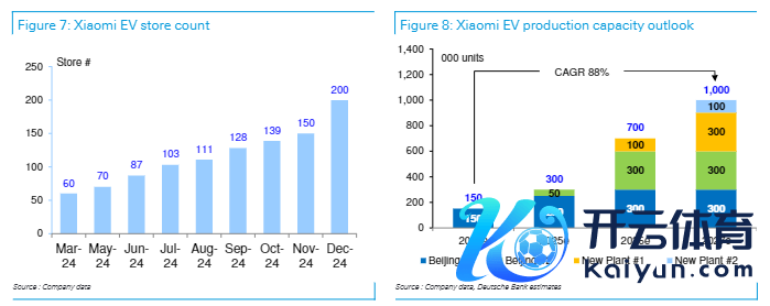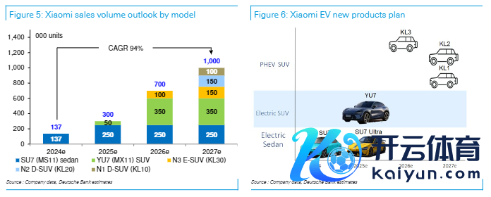 不外,由于开动销量较少以及研发用度较高,德银瞻望小米电动汽车业务将在2024年出现损失,但在2026年头度盈利,瞻望跟着居品结构的完善和高价居品的引入,2024-2027年间收尾平均售价(ASP)和盈利才调的捏续增长。