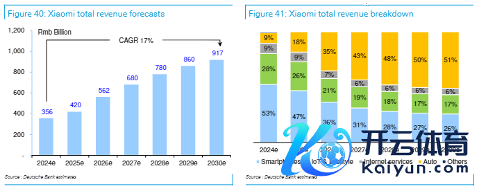 德银瞻望,小米的净利润总数将以40%的复合年增长率增长,从2024年的200亿元增至2027年的547亿元,总营收以17%的复合年增长率达到2027年的9170亿元。