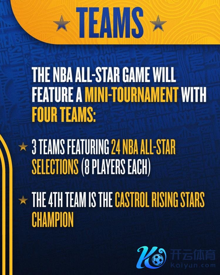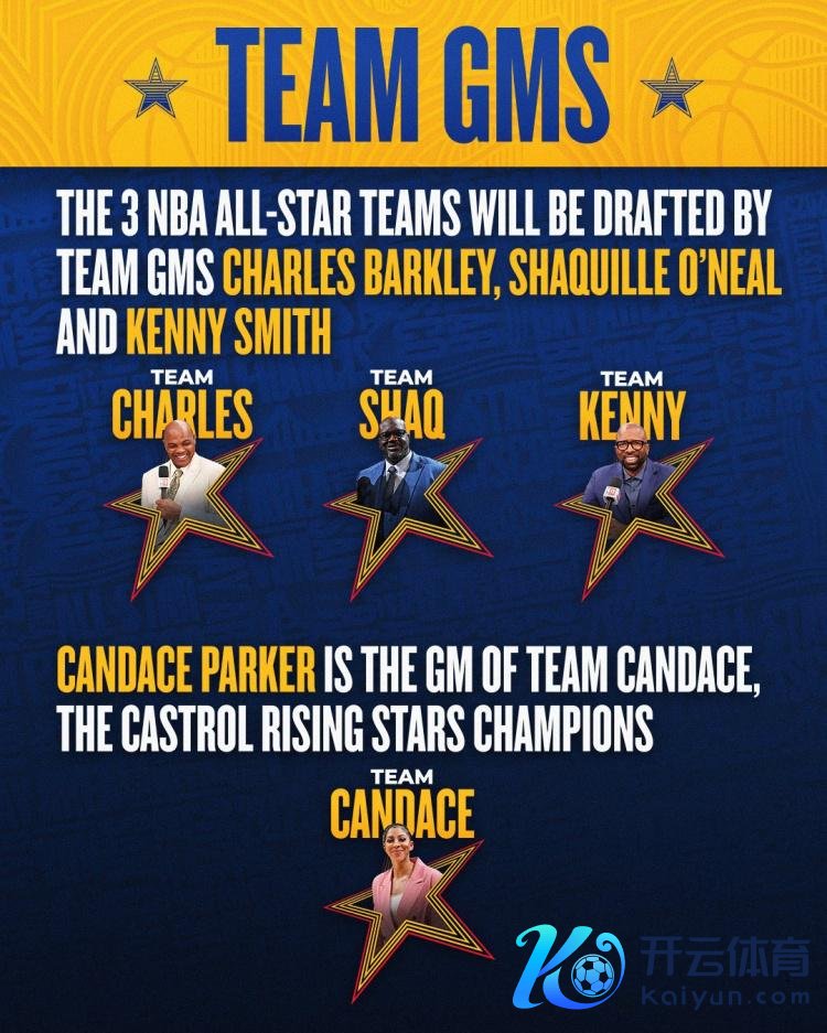 ⭐每支球队将有八名球员,并以TNT NBA分析师的名字定名,24名NBA全明星球员将被平平分红三支球队,名单由TNT讲解员和球队荣誉司理查尔斯-巴克利、沙奎尔-奥尼尔和肯尼-史小姐选出。