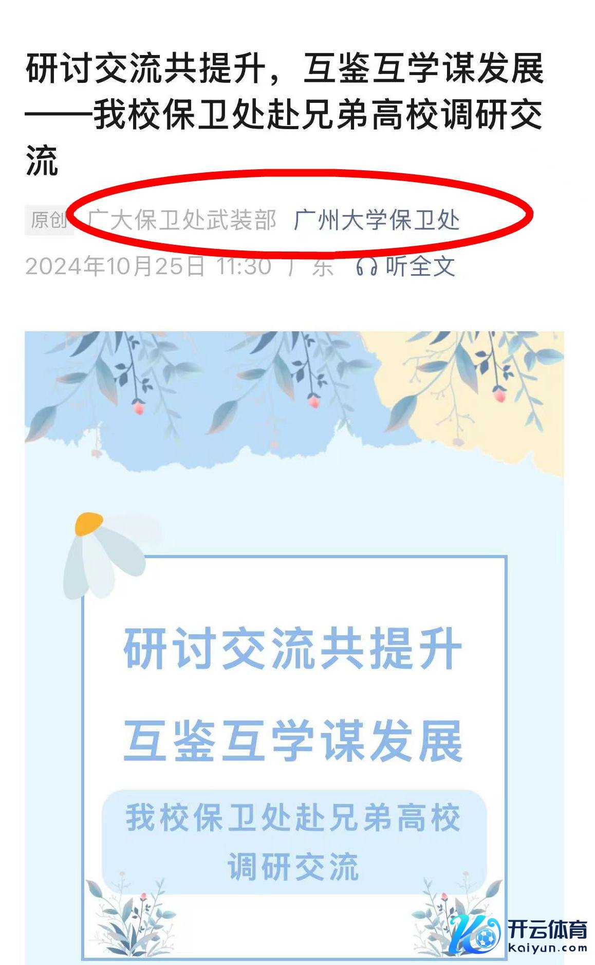 本年10月25日,“广州大学保卫处”公众号发文,称学校保卫处赴昆季学校调研交流,而这篇著作的初稿作家即是何捷。