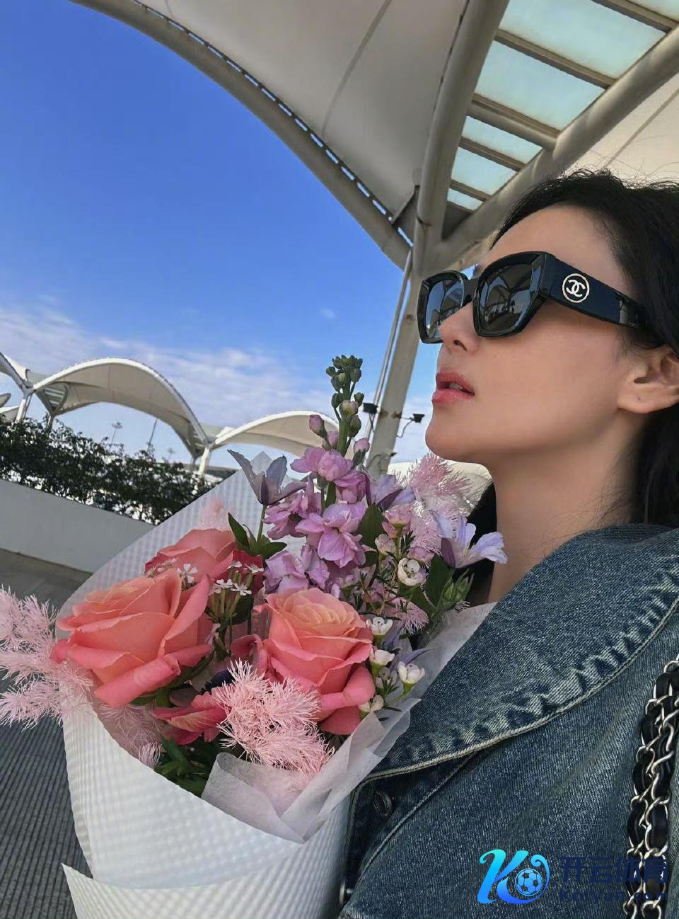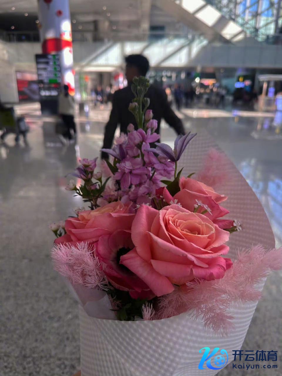 她向网友展示了“心上东说念主”送的一束花,而“心上东说念主”何捷就走在她前边,为她拉行李箱。