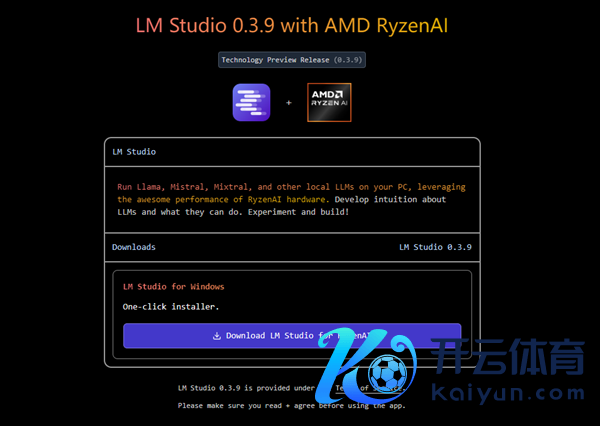 2、翻开lmstudio.ai/ryzenai,并下载LM Studio 0.3.8或更新版块。