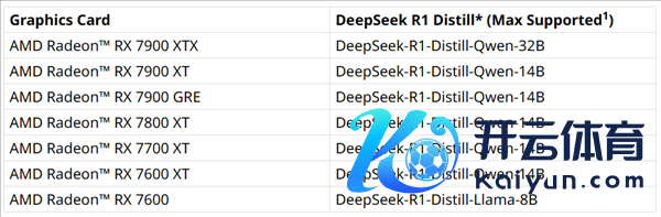 其中,RX 7900 XTX旗舰显卡最高撑抓DeepSeek-R1-Distill-Qwen-32B,RX 7900 XT、7900 GRE、7800 XT、7700 XT、7600 XT均不错撑抓到DeepSeek-R1-Distill-Qwen-14B,RX 7600以及新发布的RX 7650 GRE则合适到DeepSeek-R1-Distill-Llama-8B。