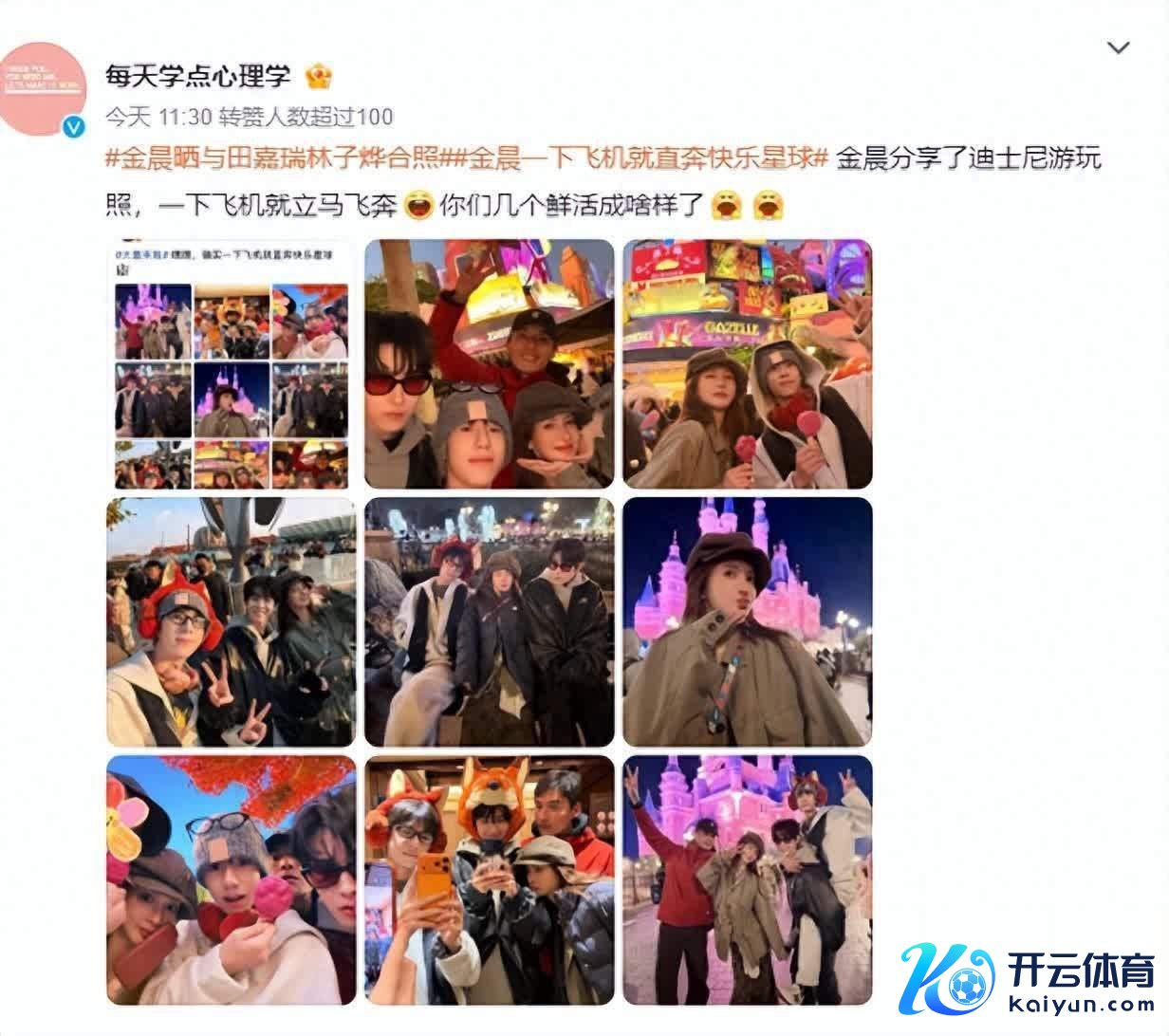 《花儿与少年6》这档综艺让她和田嘉瑞、林子烨他们成了好哥们,节目里就看得出他们相干铁,此次迪士尼之旅像是节目后的小聚。